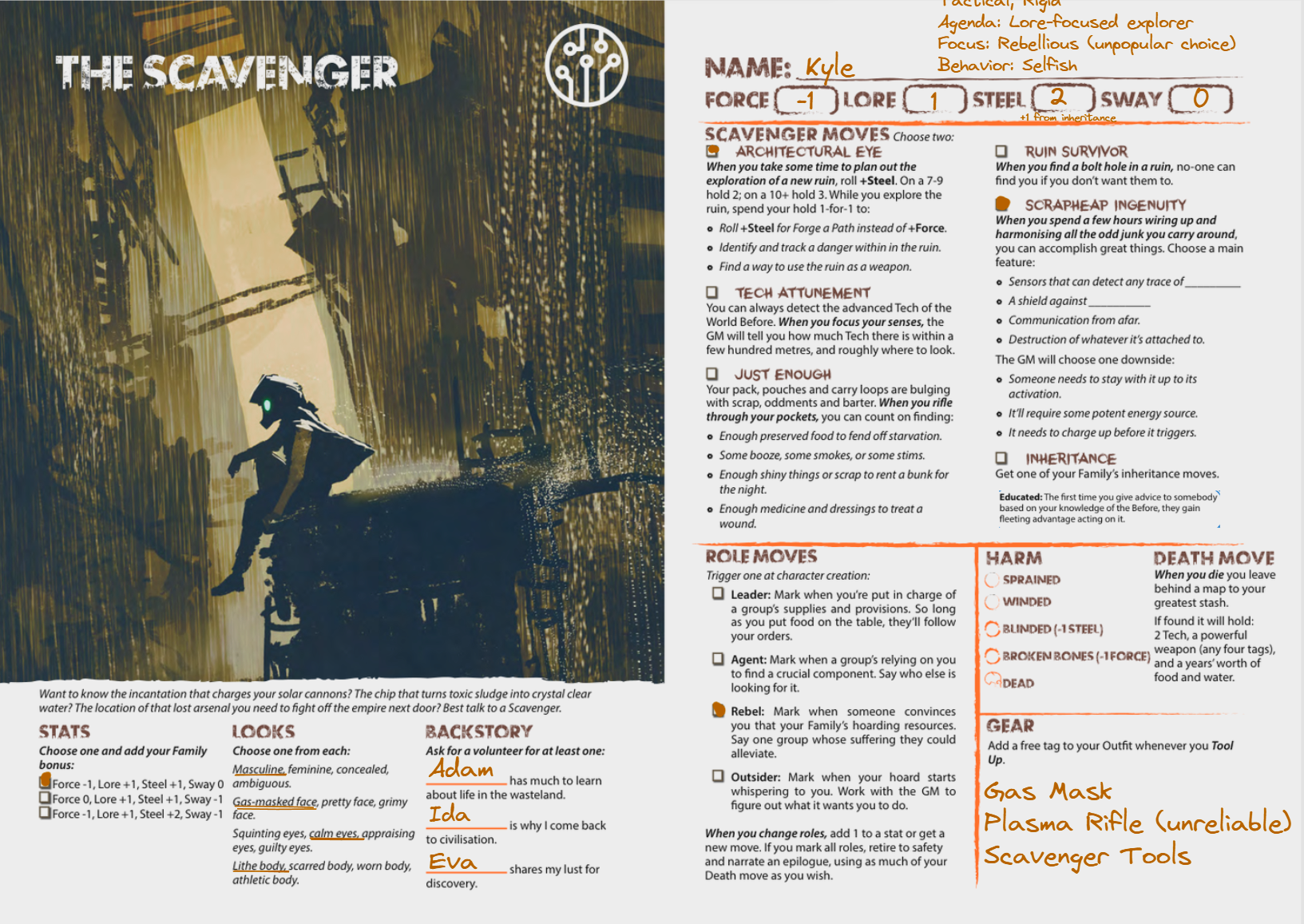 Ida will focus on studying the raiders, their leadership, his son, their movements, and this “mecha-horse” they have around, to hold up some intel for later. She then invokes Agent allows her to reveal a secret when using her skill (in this case, diplomacy) and gets a fleeting advantage acting on it later.