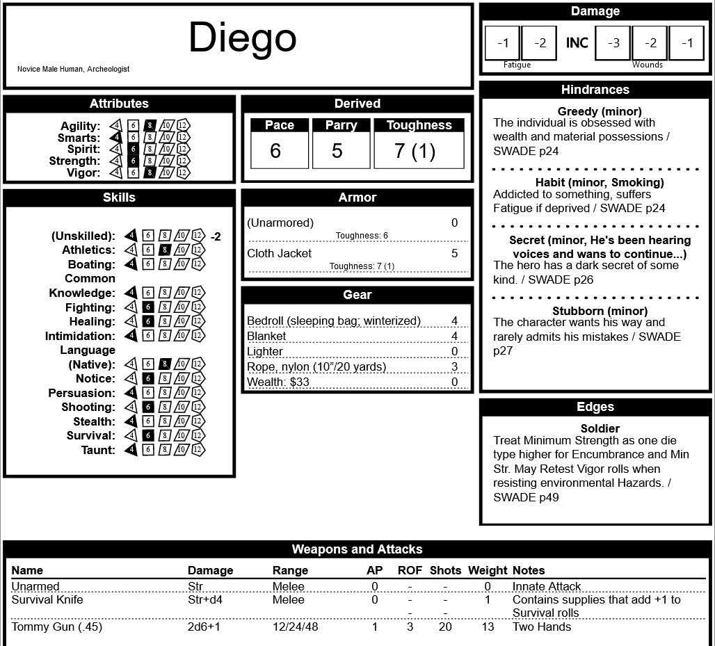 🎲 Does the Dog Attack? (Likely) → Yes. 🎲 Does he attack the Chief → Hard to say, possibly.